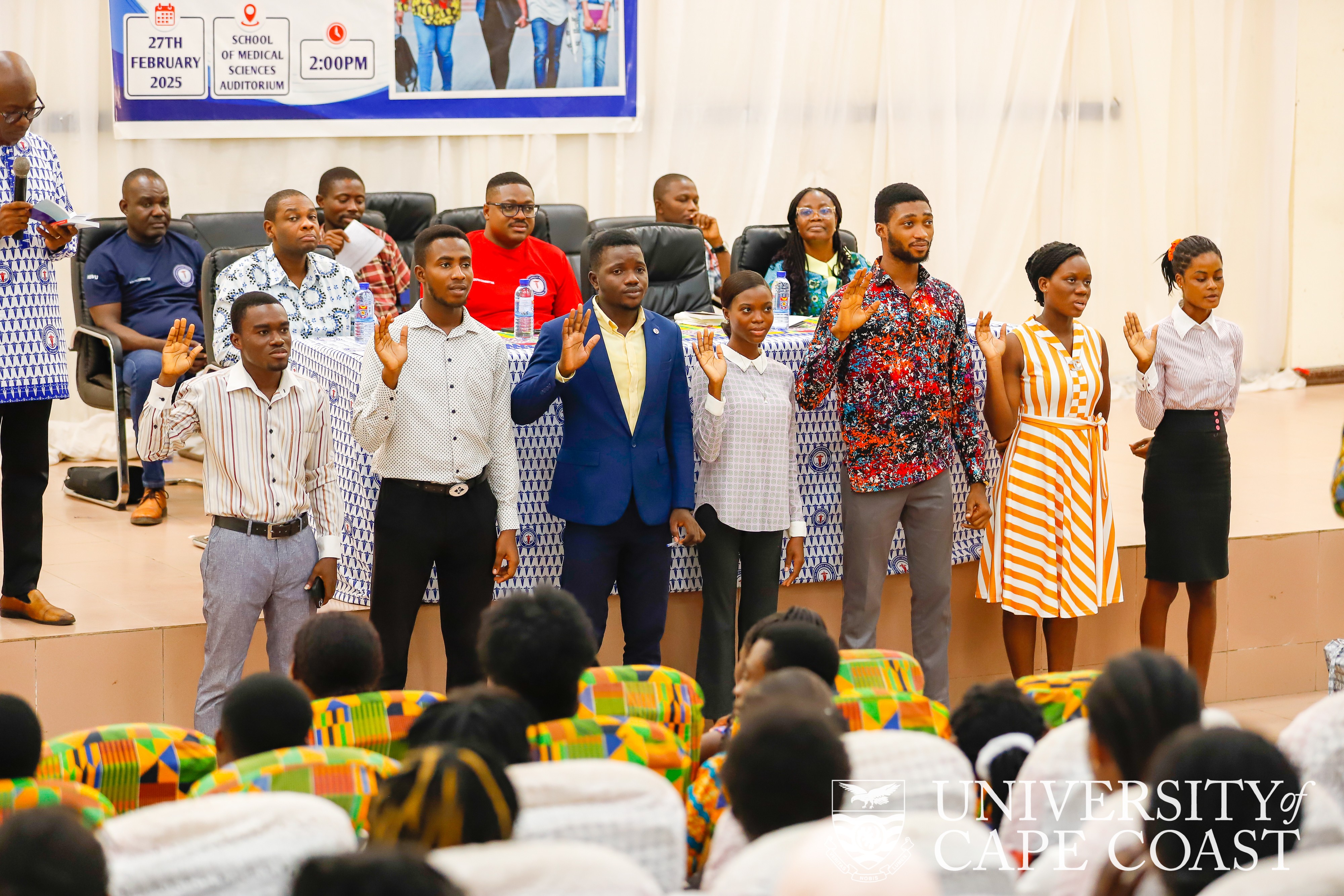 The newly inducted executives of the HSWU Tertiary Club at UCC are Lewis Ajabu as chairperson; Adeporka Awinibota Peter – Vice-Chairperson; Noah Sunkwa – Secretary and Jessica Araba Mensah – Deputy Secretary. The rest include Sheriff Adam Suraj as 1st Trustee, Janet Amesi – 2nd Trustee and Jessica Esaba Ampah – Organizer.