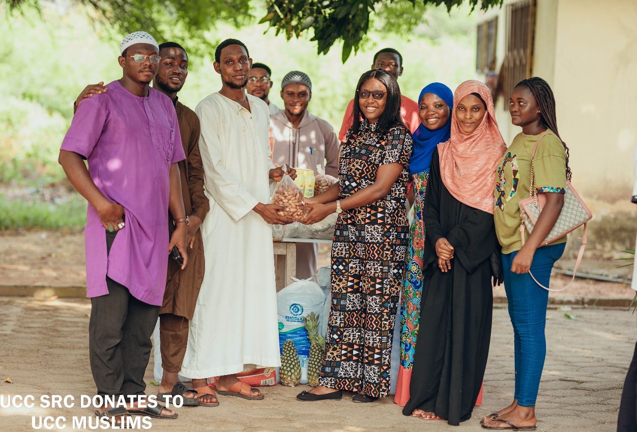 The Students' Representative Council (SRC) of the University of Cape Coast (UCC) has presented bags of sachet water and rice, fruits, and beverages to the Muslim community on campus to support them during the Ramadan period.