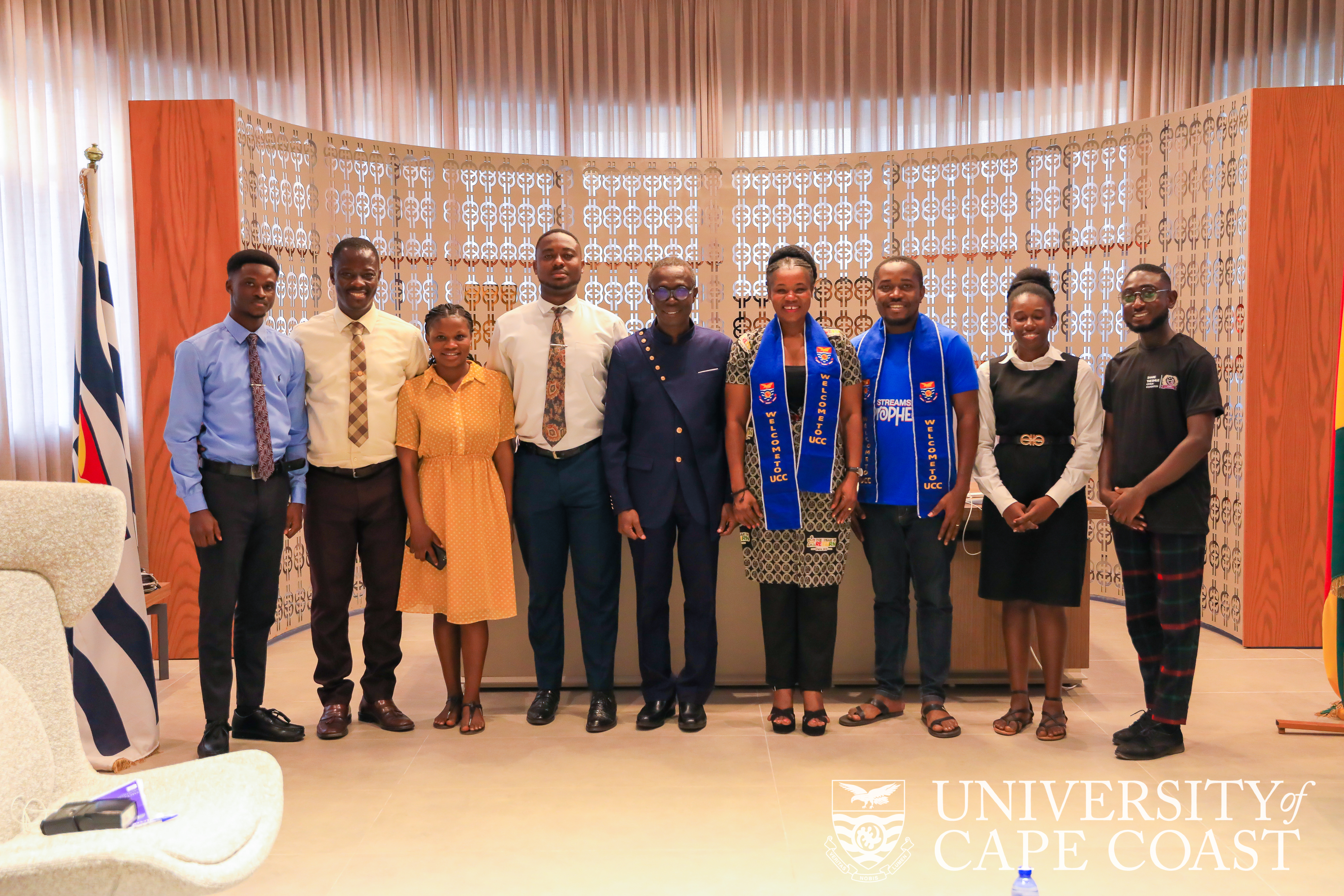 The delegation included the Head of Protocol, Apostle Kumah Boakye, the Acting President of STSOF, Mr. Paul Osei Sarpong, the Founder of Scholar Connect, Mr. Jehoshaphat Inkoom, and some students of UCC.